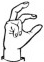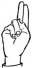 На ћирилици написано АНДРИЈА БАКМАЗ састоји се из 13 слова [?]. Исписано ћириличном једноручном азбуком за глувонеме: